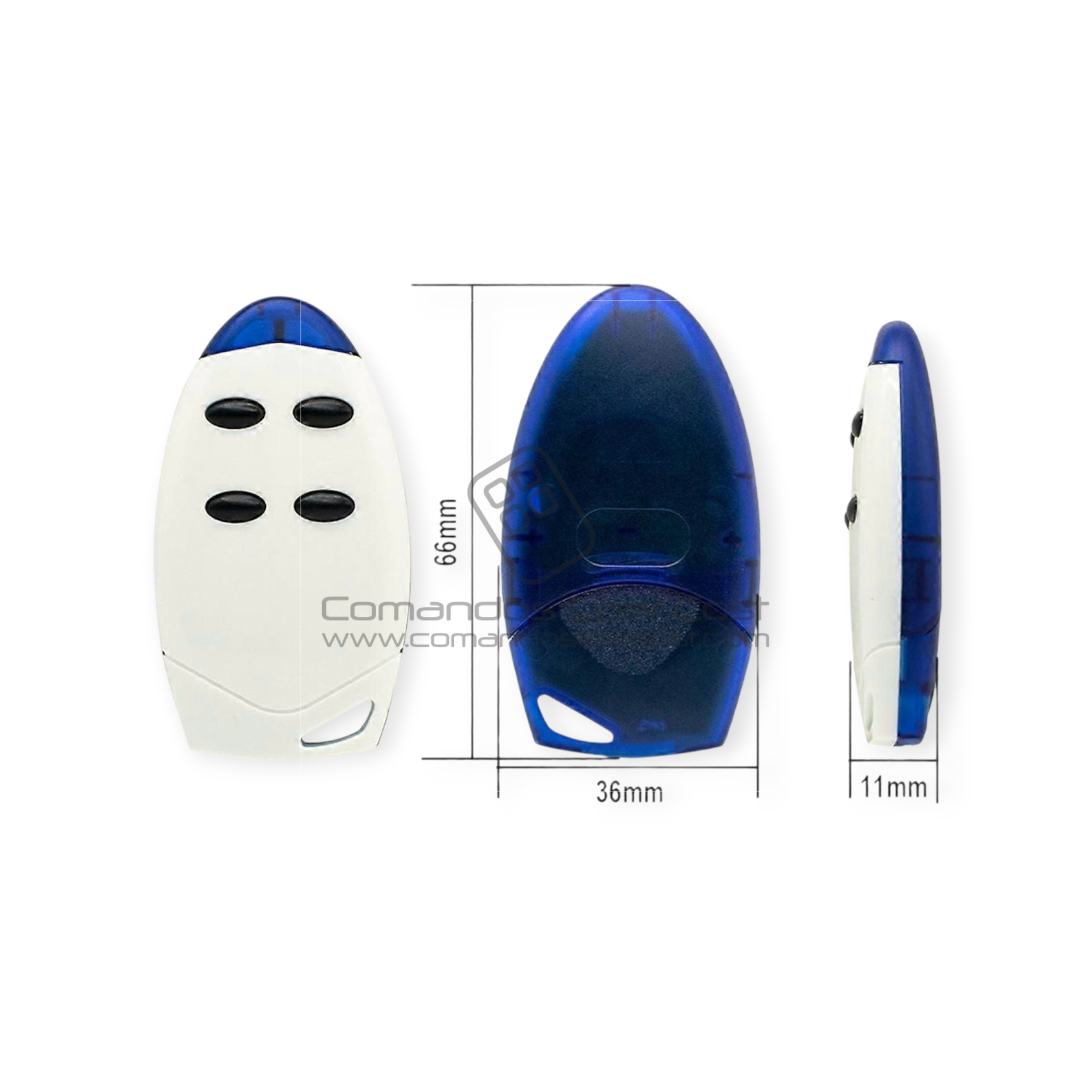 - Frequência de 433.92 MHZ, tipo rolling code.