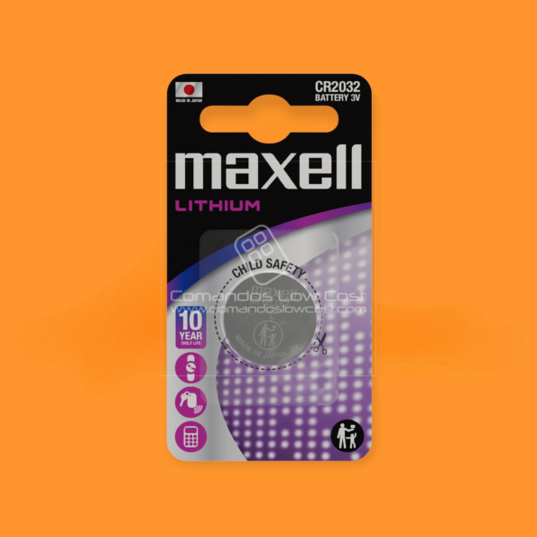 - Pilha original Maxell, lithium de 3V, tipo CR 2032.